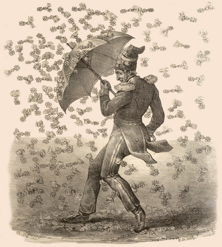 Il peut être très plaisant de se représenter les tortures d'un pauvre diable, averti depuis deux mois par une « indiscrétion des bureaux », qu'il va être bombardé chevalier pour le Jour de l'An ; qui, sous le sceau du secret, a confié la bonne nouvelle à quelques milliers de parents, d'amis et connaissances ; a déjà décoré toute sa garde-robe, gilets de flanelle compris ; a fait devant la glace une douzaine de répétitions générales et qui, finalement, n'aura eu pour ses étrennes qu'une veste et le mépris de son concierge.