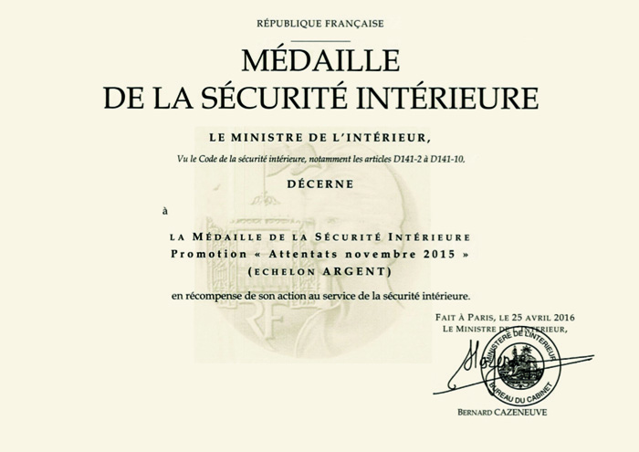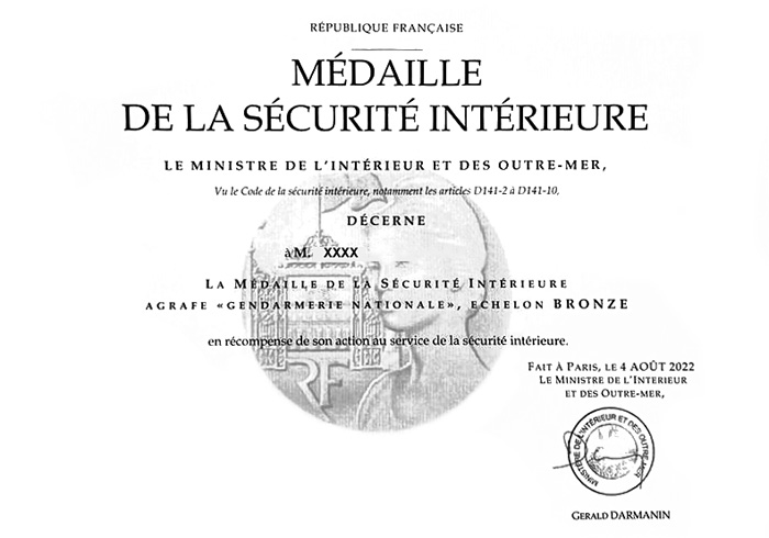 MÉDAILLE DE LA SÉCURITÉ INTÉRIEURE
