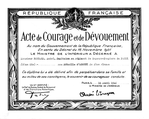 Diplôme remis en 1946