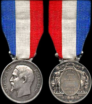 Médaille d'Argent décernée en 1852 par le ministère de l'Intérieur
