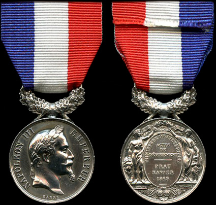 Médaille d'Argent décernée en 1869 par le ministère de l'Intérieur