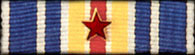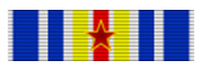 Porté en barrette, le ruban est composé de quinze raies verticales disposées du centre vers les extrémités de la manière suivante : une raie centrale rouge de 3 mm est encadrée par un liseré blanc de 1 mm, puis d’une raie jaune de 3 mm, d’un liseré blanc de 1 mm, d’une raie bleue de 3 mm, d’un liseré blanc de 2 mm, d’une raie bleue de 5 mm et enfin d’un liseré blanc de 1 mm.