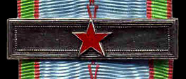 La barrette de l'insigne des blessés de guerre est un rectangle du ruban décrit ci-dessus d'une longueur égale à la largeur du ruban et de 10 mm de hauteur.