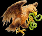 Au centre de la croix, en superposition, un aigle noir aux ailes déployées, tenant un serpent vert par le bec et les serres.