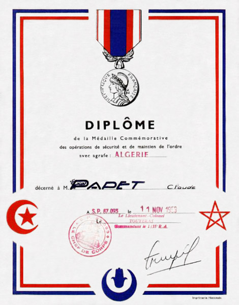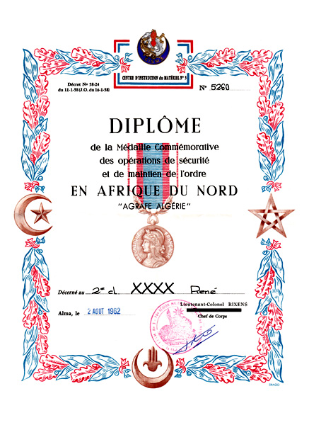 Diplôme remis en 1959 pour l'armée de terre