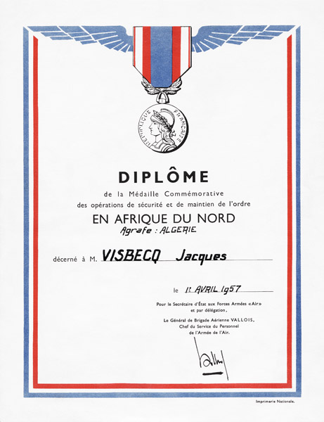 Diplôme remis en 1957 pour l'armée de l'Air