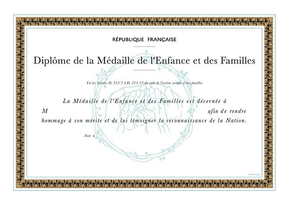 MÉDAILLE DE L'ENFANCE ET DES FAMILLES