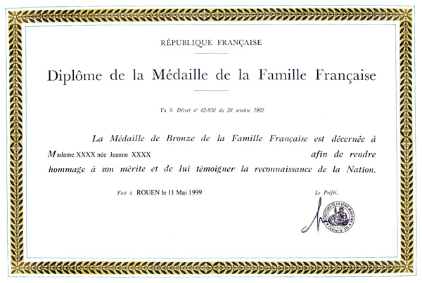 MÉDAILLE DE LA FAMILLE FRANÇAISE