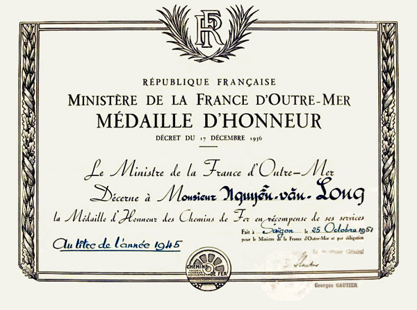 Diplôme remis en Indochine en 1951