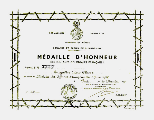 MÉDAILLE D'HONNEUR DES DOUANES COLONIALES FRANÇAISES