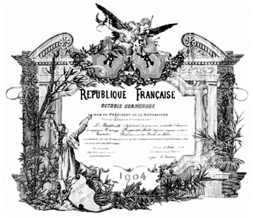 Diplôme remis en 1904