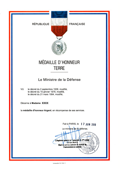 Diplôme "Terre" délivré en 2010 pour une médaille d'argent