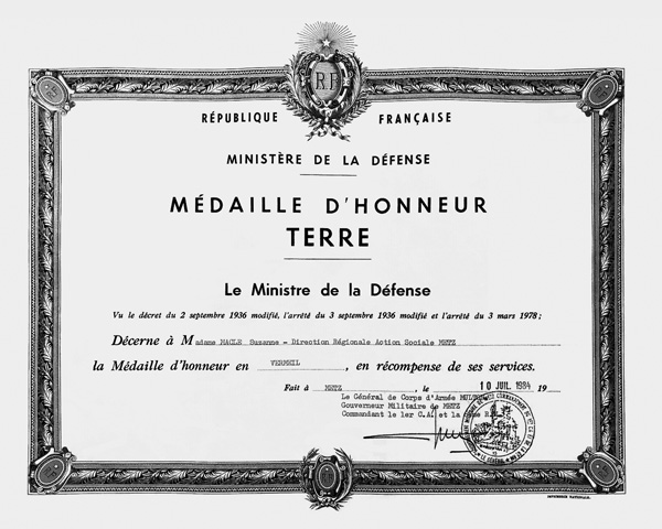 Diplôme "Terre" délivré en 1984 pour une médaille de vermeil