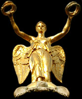 Sur l’avers : l’effigie d’une victoire ailée, en pied et de face, tenant en main droite un