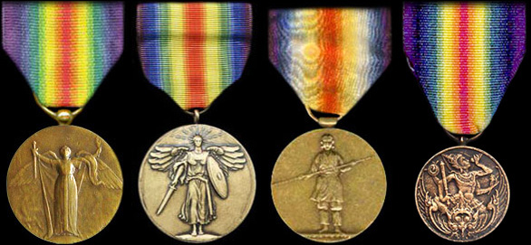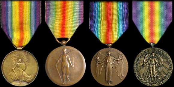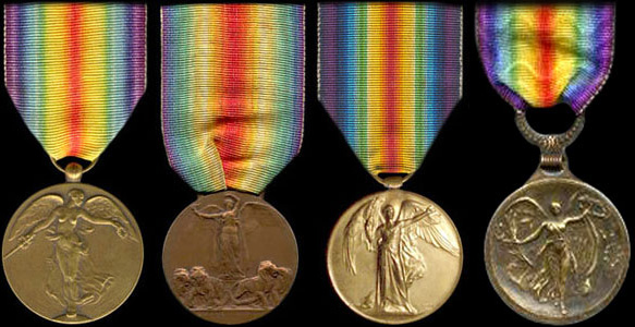 Avers des médailles Belge, Italienne, Britannique et Grecque
